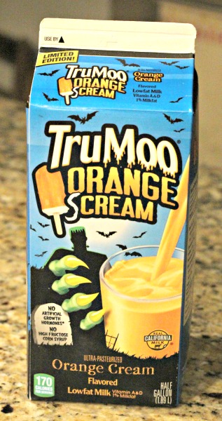 During the month of October I like to try a variety of ways to change up our meals, and make them spooky; Not necessarily scary, but I like to go along with the Halloween theme. As I have mentioned many times before, I love this time of year. I love baking and cooking for the holidays, and I certainly love decorating. So, I find it so fun to have our meals speak Halloween for themselves. I love when companies make that task even easier, by coming out with holiday themed products. TruMoo has done just that with their brand new TruMoo Orange Scream milk. I decided to take the challenge of creating a yummy festive recipe with the new milk.
