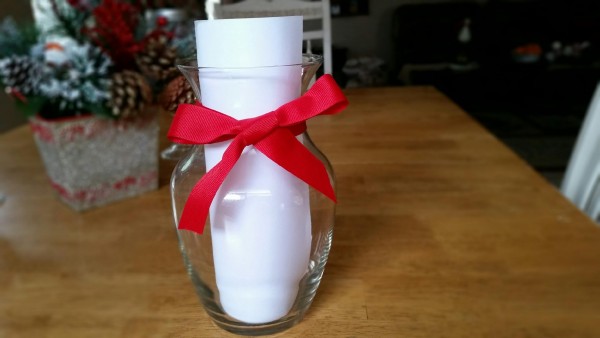 Instead of just emailing my brother the printable certificate for the glass blowing class, I thought I’d print it out and sent it off with something tangible they can open on Christmas morning. A girlfrend of mine told me she has heard that beginners frequently make glass roses in their first class, so I thought a pretty vase would be fun to gift along with the certificate. I simply rolled up the voucher and stuck it in the vase, with a ribbon around it. Easy peasy, but shows some thoughtfulness. Perhaps this will even inspire my brother to give my sister-in-law the gift of more flowers throughout the year. Hint, Hint!