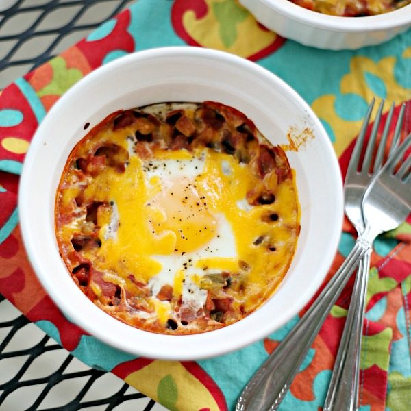 If you serve the eggs in individual ramekins they can be eaten as is, or you can eat them along with some fried up corn tortillas! Okay, now for the recipe – which you’ll be amazed at the ease of it. I hope you’ll try it ASAP because it could become a new family favorite when you’re short on time and want something delish!
