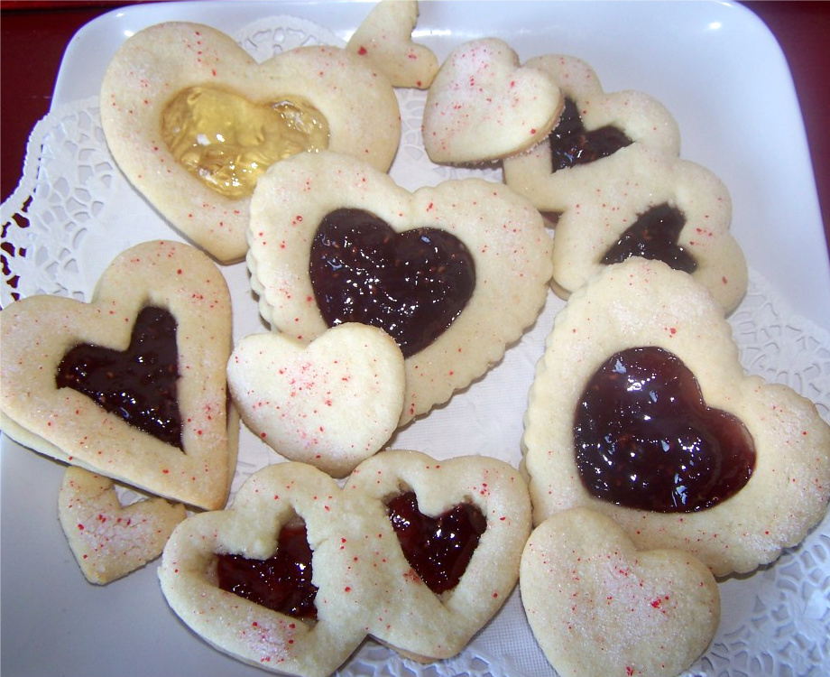 *To make sandwich hearts: Brush bottom heart lightly with jam; cover with a second heart with center cut out; jam will adhere hearts. Fill cut-out area with more jam if necessary.